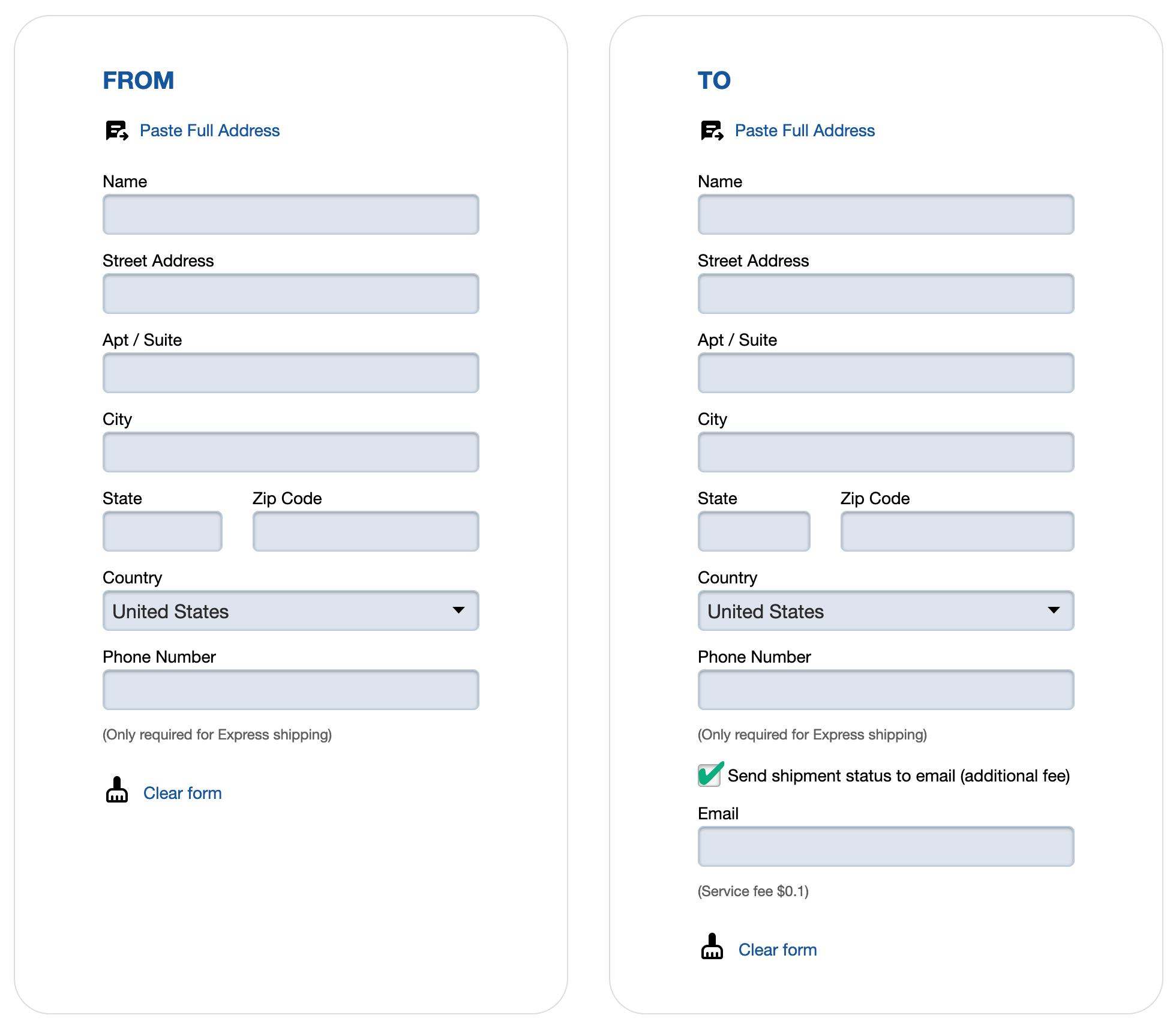 - Select whether you want to email tracking information to your customer for an additional 0.10 USD.