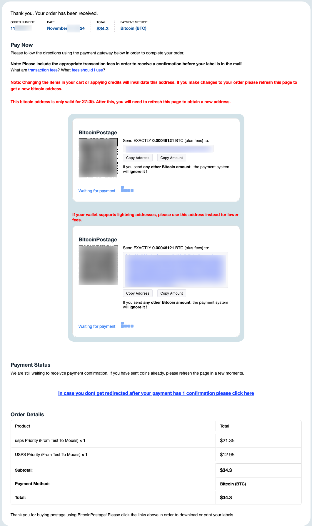 About Your Shipping Labels from Bitcoin Postage